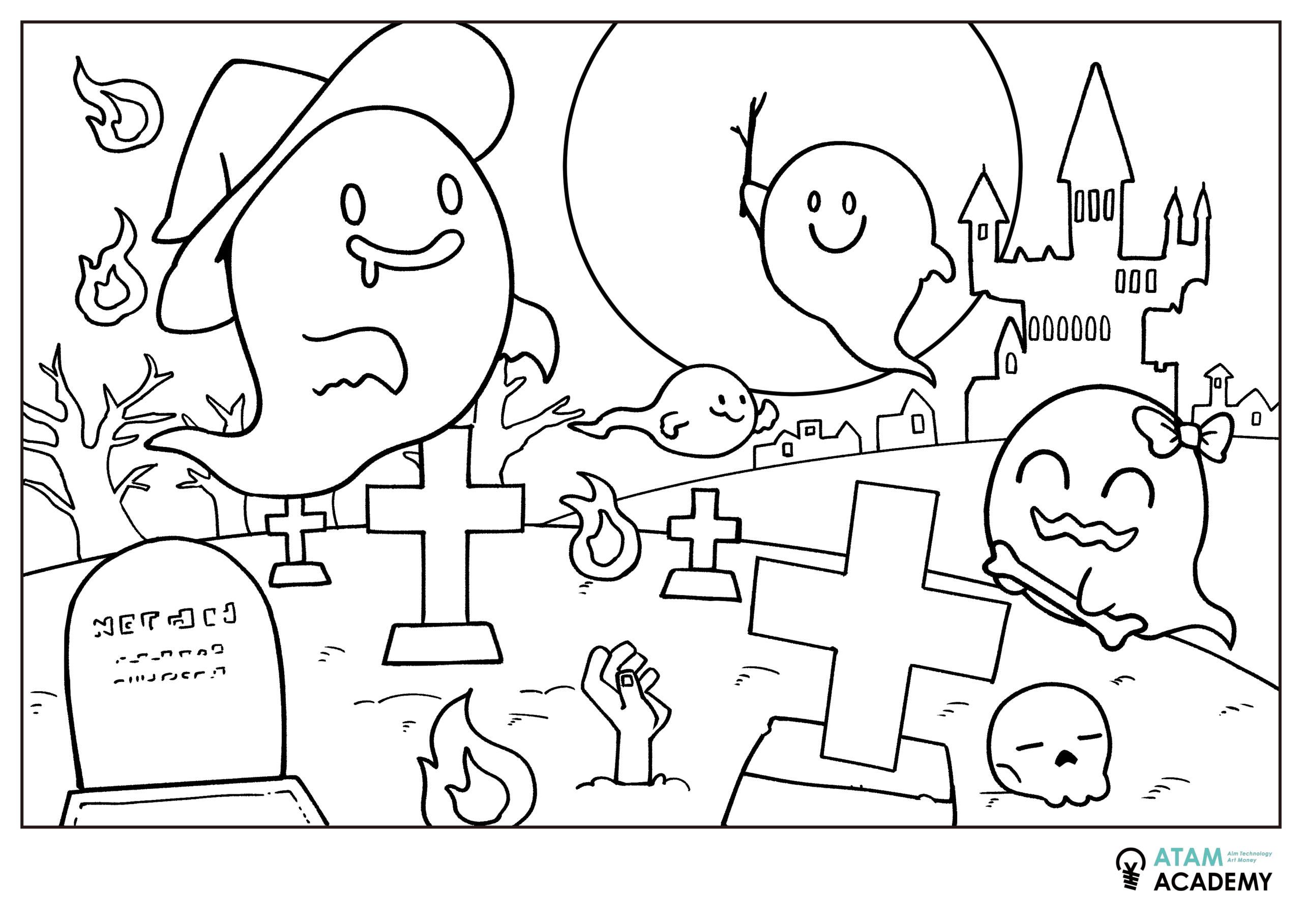 満月の夜に墓場で遊ぶ幽霊たち